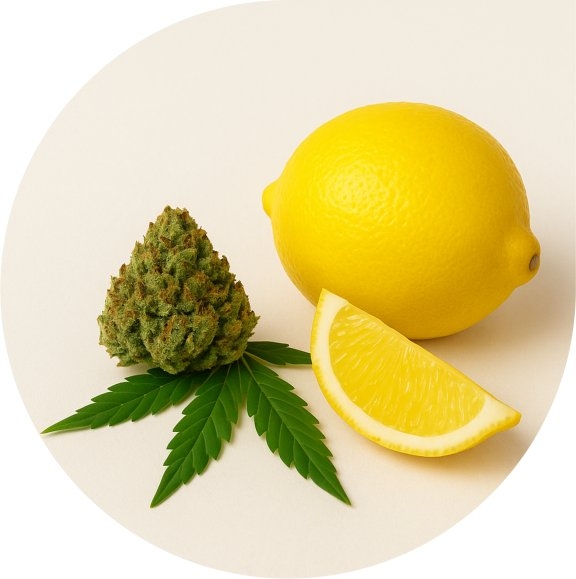 Wenn eine Blüte nach Zitronen oder Orangen riecht, steckt meist Limonen dahinter. Dieses Terpen findet sich nicht nur in Cannabis, sondern auch in Zitrusfrüchten. Viele Menschen beschreiben Sorten mit viel Limonen als belebend oder stimmungsaufhellend. Wissenschaftlich lässt sich das noch nicht eindeutig belegen, doch schon der frische Duft kann das Gefühl von Klarheit und Energie unterstützen.